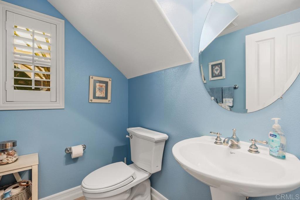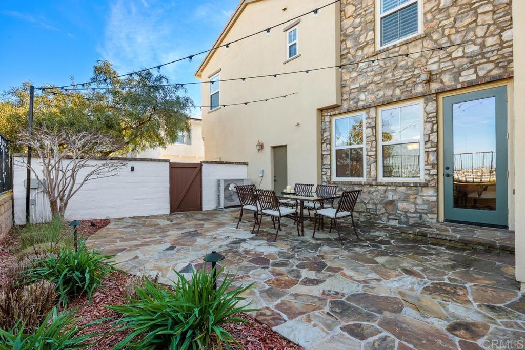 Step inside this meticulously maintained Portico Plan 4 home, featuring 4 bedrooms, 2.5 baths, plus office and 2,408 square feet of thoughtfully designed living space. The interior boasts elegant touches like plantation shutters, crown molding, LED lighting, and built-in speakers, creating a refined yet welcoming atmosphere. The chef's kitchen is a showstopper, complete with a large island, slab granite counter tops, an intricate stone backsplash, and top-of-the-line GE Monogram stainless steel appliances. Perfect for entertaining, the kitchen seamlessly opens to the family room, while the adjacent dining room offers easy access to the private backyard--ideal for al fresco dining or simply soaking in the serene views. On the main level, you'll find the versatile office/den, perfect for working from home or creating a cozy retreat. The upstairs features all four bedrooms and a convenient laundry room. The spacious primary suite is a haven of relaxation, offering two walk-in closets with custom built-ins and a spa-like bathroom with dual sinks, slab countertops, a luxurious backsplash, and a tranquil ambiance. Additional amenities include air conditioning, a tankless water heater, a security system, and an attached two-car garage. Outside your door, enjoy easy access to award-winning schools, parks, shopping, dining and a new public library. Nearby Pacific Highlands Ranch recreation center offers a sparkling pool and spa, a kids' water-play area, BBQs, and a fitness center. Don't miss the chance to call this beautifully appointed home your own. Schedule a viewing today and discover the perfect blend of elegance, convenience, and lifestyle at 13569 Pacific Highlands Ranch Parkway!