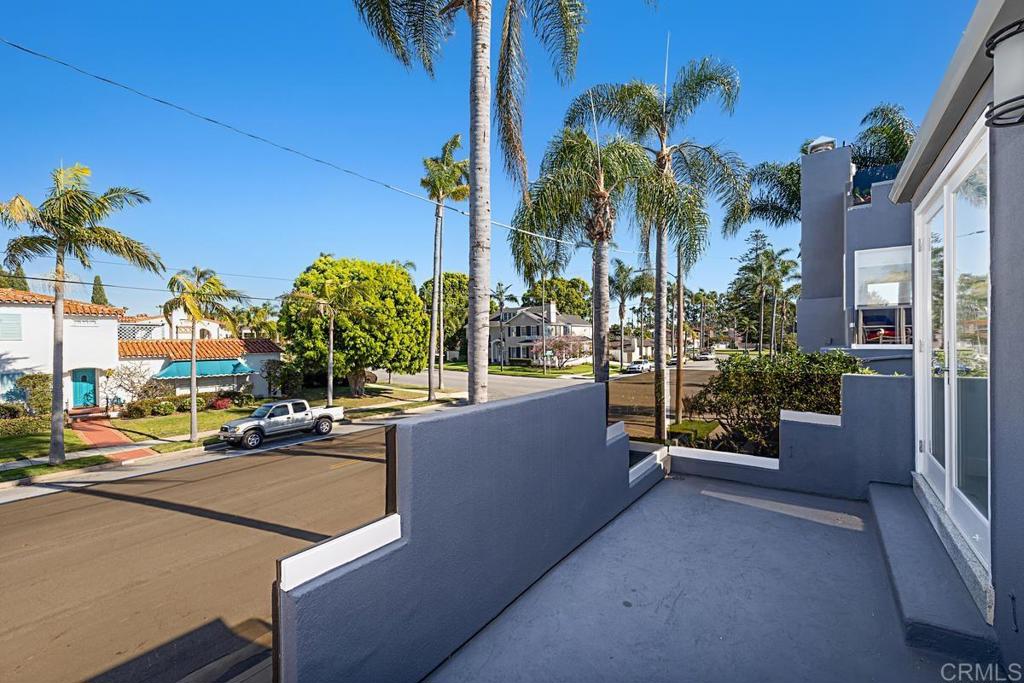 Nestled on a coveted corner lot in the prestigious "Golden Triangle" of Coronado Village, this contemporary home combines timeless elegance with modern functionality. Thoughtfully designed and beautifully upgraded, every detail invites you to live the quintessential coastal lifestyle. Step into the remodeled kitchen, a true chef's delight, featuring a generous island, pendant lighting, intricate backsplash, and top-of-the-line appliances including a Dacor refrigerator and Thermador oven. The spacious dining area, complete with custom built-ins, flows effortlessly to the private courtyard through La Cantina doors. Here, you'll find an entertainer's dream--a tranquil space with a built-in barbecue, a soothing fountain, and ample room for al fresco dining or relaxing under the stars. The inviting living room is the perfect retreat, boasting an electric fireplace and French doors that also lead to the courtyard, offering seamless indoor-outdoor living. A versatile office with a Murphy bed and one additional bedroom are conveniently located on the main level. Upstairs, the loft provides an additional gathering space, workout area, or home office. The primary suite is a true haven, featuring two closets, direct access to a large view balcony, and a spa-like bath with a Jacuzzi tub, steam shower, and dual sinks. Multiple decks offer the perfect vantage points for enjoying the gorgeous views of Glorietta Bay and Coronado's iconic sunsets. Step outside your door and into a vibrant, walkable neighborhood that epitomizes the best of Southern California living. This remarkable property isn't just a home--it's a lifestyle. Don't let this rare opportunity pass you by!