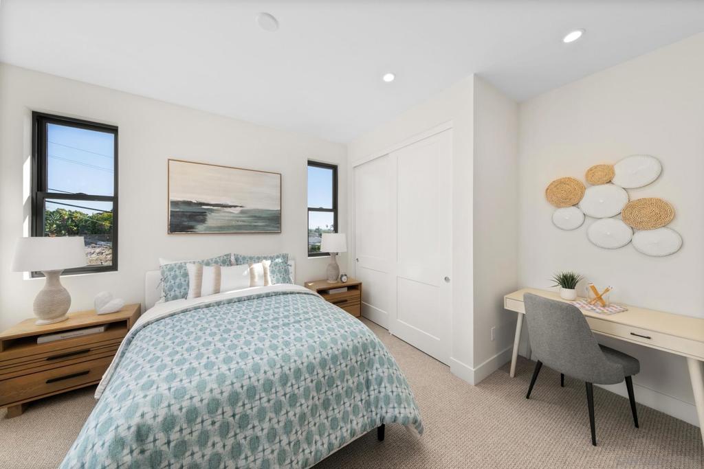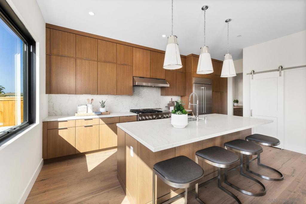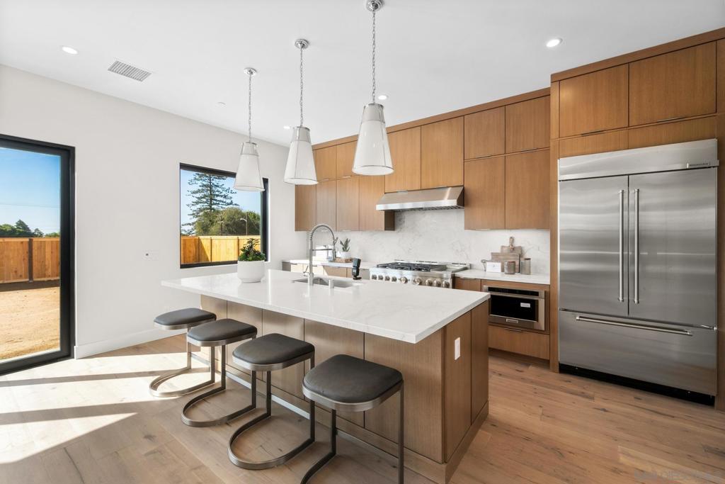 Welcome to 8 Pacific, a small enclave of 8 brand new ocean view homes located in the highly sought after Fire Mountain neighborhood. Close to downtown Oceanside, Carlsbad Village, with easy access to the freeway, and just over a mile from the beach, these stunning homes are in a prime location. This gorgeous coastal contemporary home features high-end finishes and appliances, hardwood flooring, high ceilings, and large black framed windows throughout which flood the home with natural light. The impressive kitchen opens up to the great room, and leads out to the spacious, ocean view backyard through a large slider, perfect for California indoor-outdoor living. There is a bedroom and full bath, as well as an office on the first floor. The second floor boasts a primary ocean view bedroom with luxurious en suite bath. There are two secondary bedrooms, a conveniently located laundry room and an ADU with separate entrance. The home is crowned by a rooftop terrace, the perfect place to watch the sunset over the Pacific Ocean.