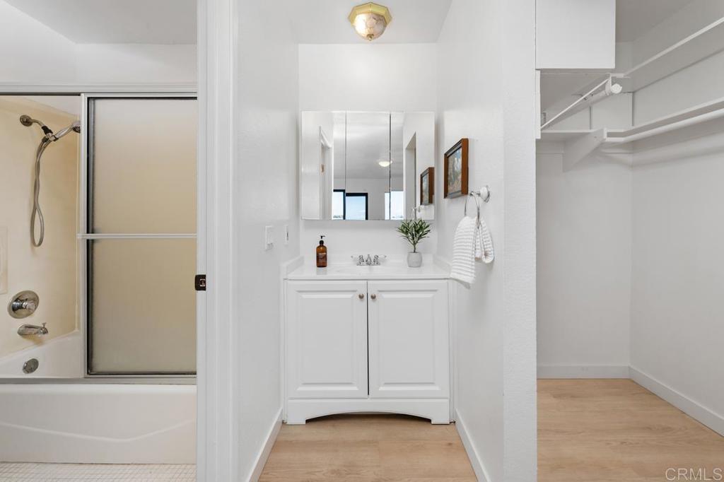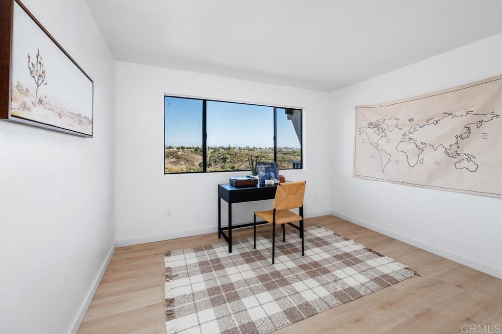Charming 2BD/2BA home in BAY PARK with wonderful VIEWS of Tecolote Canyon and golf course! Kitchen is light and bright with sparkling white cabinetry and tile counter tops. NEW luxury vinyl tile throughout living room and bedrooms. The bathrooms have been refreshed with newer vanities. Additional highlights include a stackable washer/dryer in the unit, a cozy fire place and a one car detached garage with one additional parking space. Located in a lovely complex in Bay Park with a swimming pool and spa! Just one block away from Sprouts market, Starbucks, restaurants, fitness studios, and hiking trails. Five minute drive or short bike ride to the Bay, Fiesta Island and Sea World!