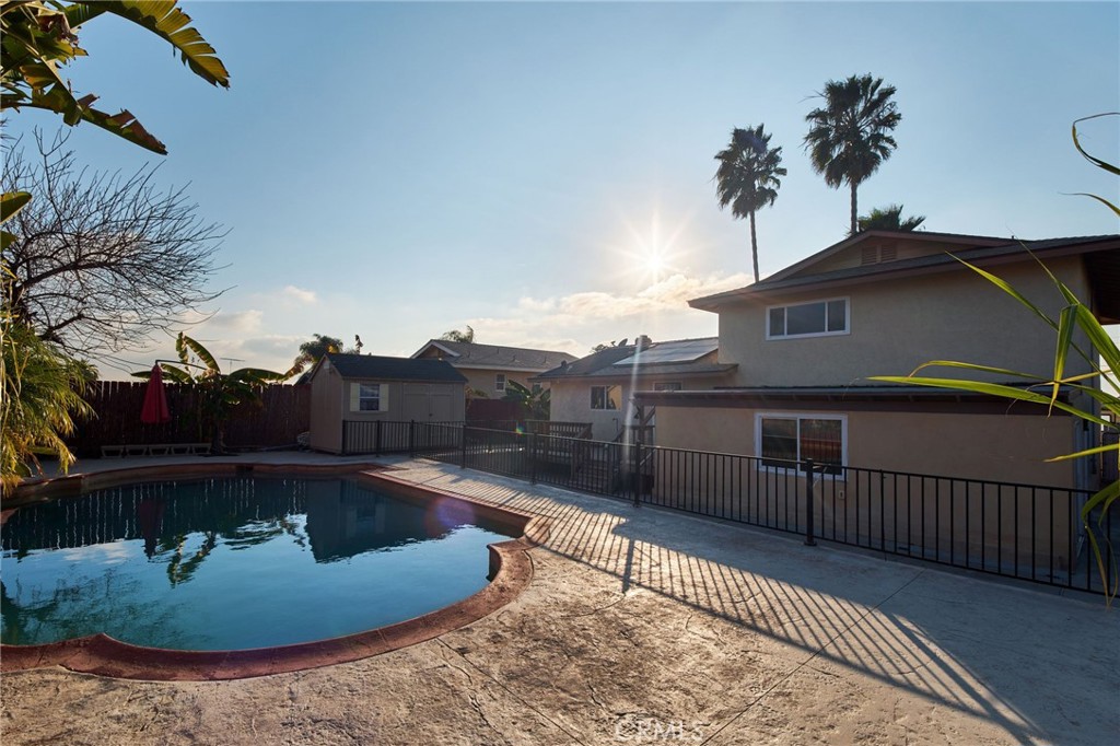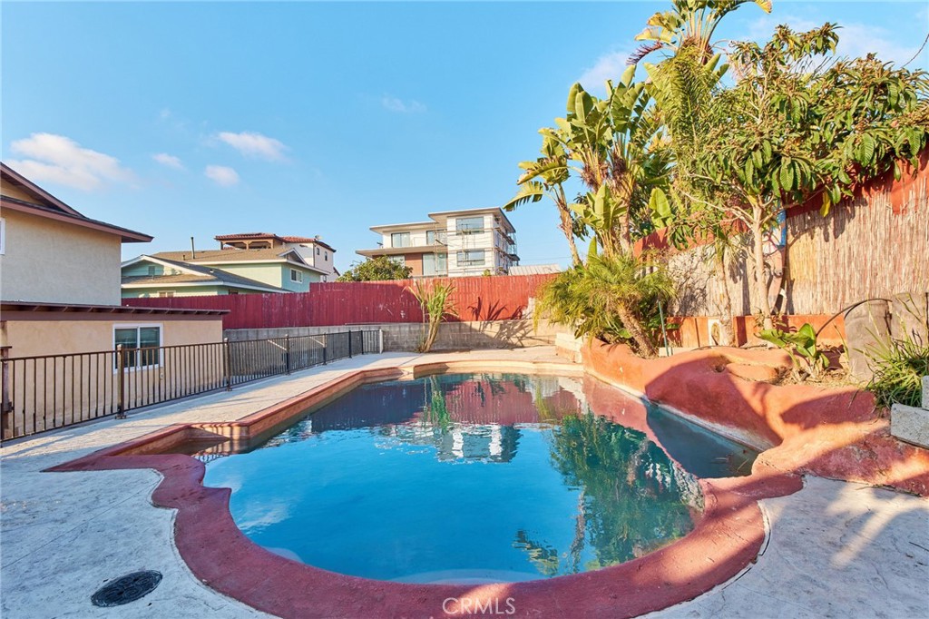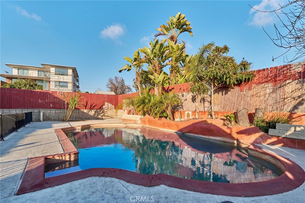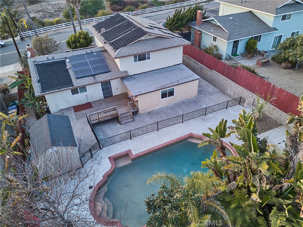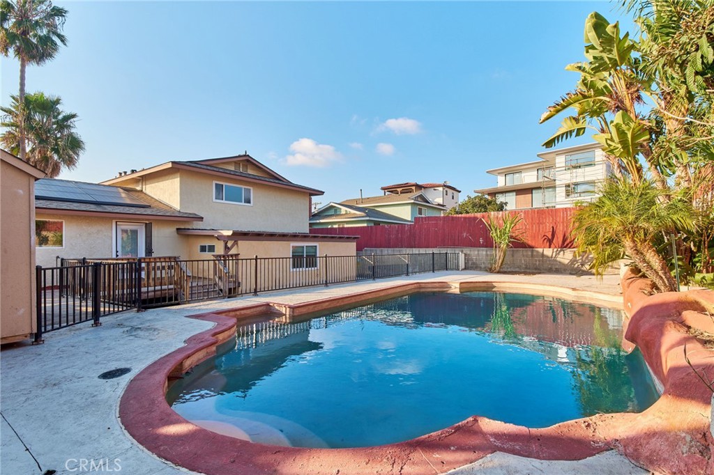 The main home includes spacious living. The backyard features a pool.