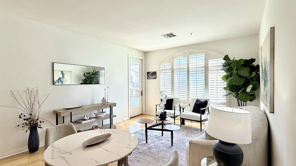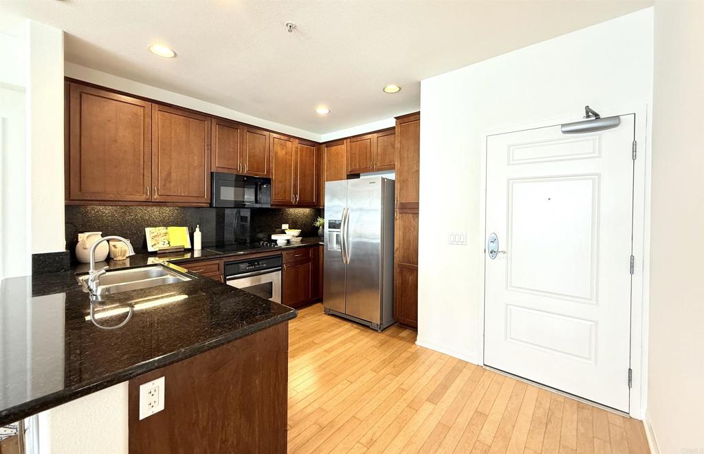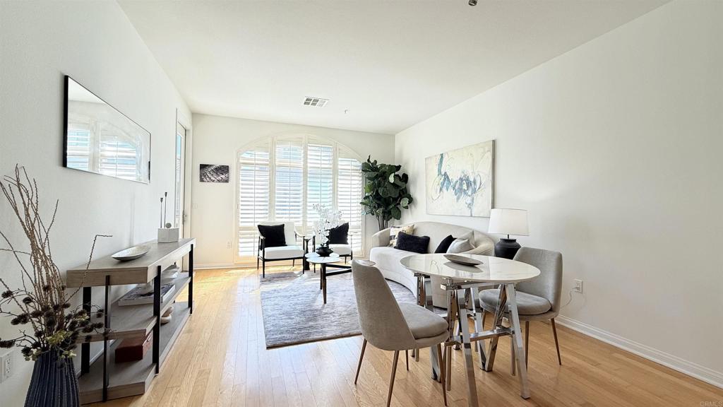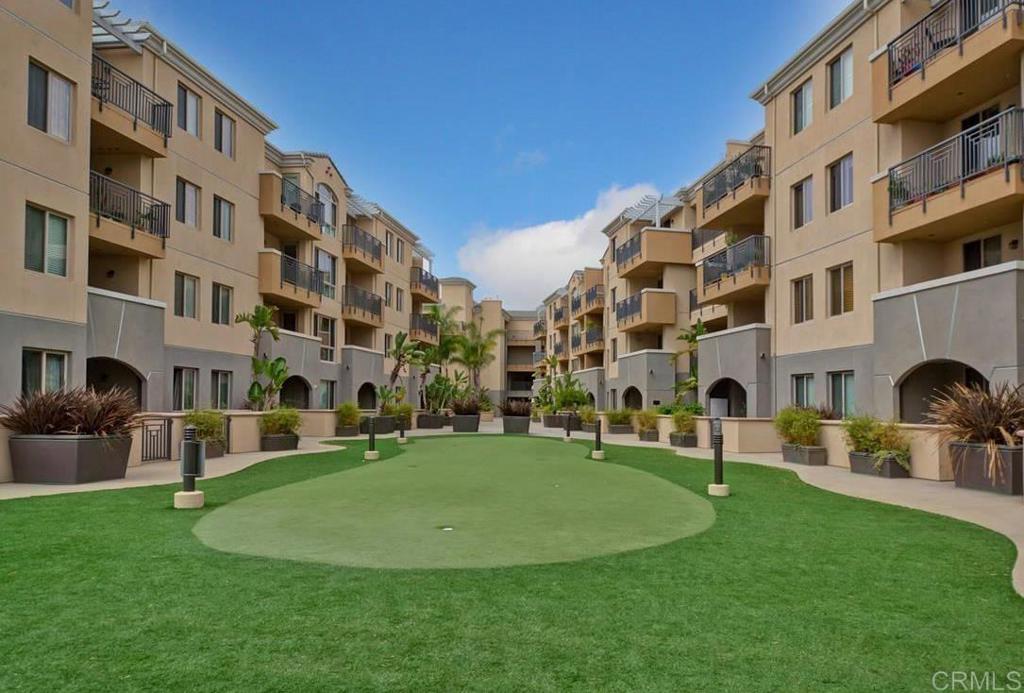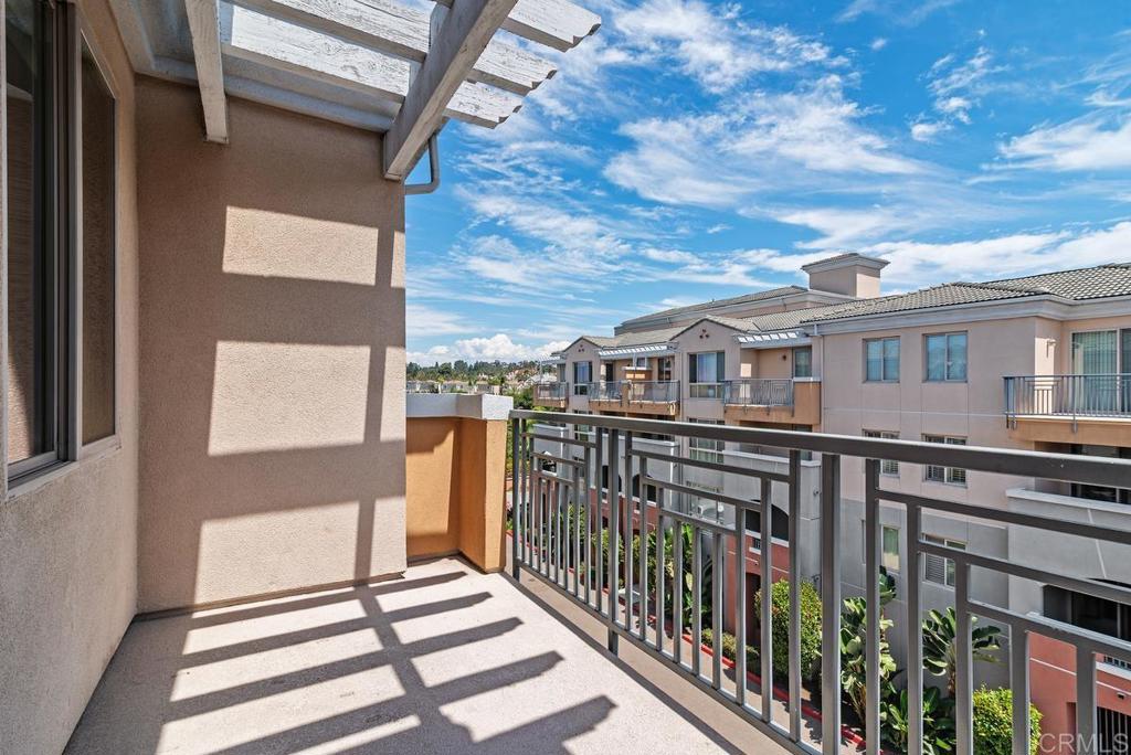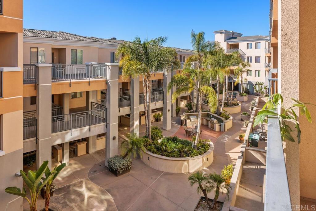 Price improvement and newly staged. Welcome to this 2BD/2BA home in the HEART of Carmel Valley. This wonderful 4th floor unit (the very top floor) in a quiet location is light and bright with an open concept floor plan. The kitchen features slab granite counter tops and backsplash, a brand new cooktop and dishwasher and a stainless steel refrigerator and oven. The HVAC system was replaced a year ago. Additional features include a balcony, full size laundry closet, wood flooring in the entry, kitchen and living room, fresh paint throughout and two underground parking spaces in the garage. Pell Place amenities include a gated entry, elevators in each building, a dog run, fitness room, BBQ area, 18 EV charging stations, and a putting green for residents to enjoy. Located directly across from the Del Mar Highlands Town Center and just steps away from the Carmel Valley Recreation Center, the Carmel Valley Library, and upscale shopping and dining at One Paseo. Award winning school district!