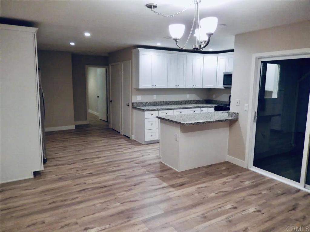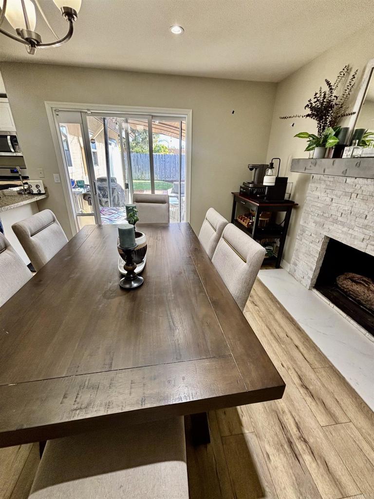 This lovely home in the Murray Mission neighborhood of Oceanside and CAMP PENDLETON features beautiful laminate wood flooring throughout. The kitchen boasts white shaker cabinets, granite countertops, stainless steel appliances and a kitchen pantry for extra storage. The dining room highlights a stacked stone fireplace and modern mantle and the bathrooms were remodeled in 2018 with light corian countertops and shaker style cabinets. The fully fenced yard with grass and bark chips is perfect for outdoor entertainment. Residents can enjoy the community pools and parks and the residence is just a short drive from grocery stores, cafes, and coffee shops. Landlord pays for landscape maintenance.