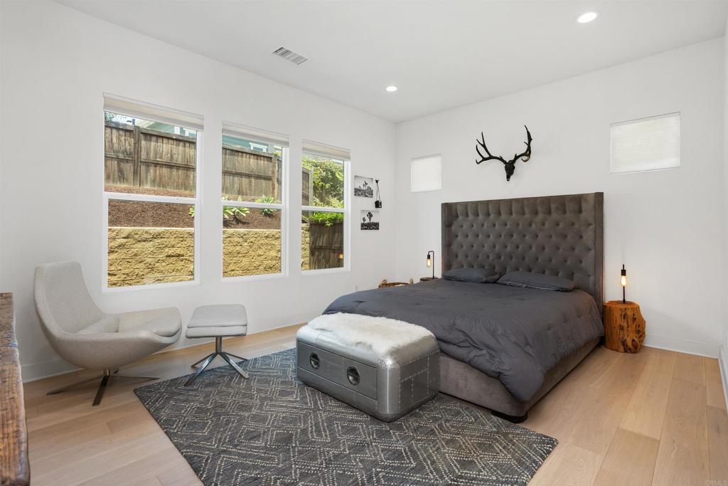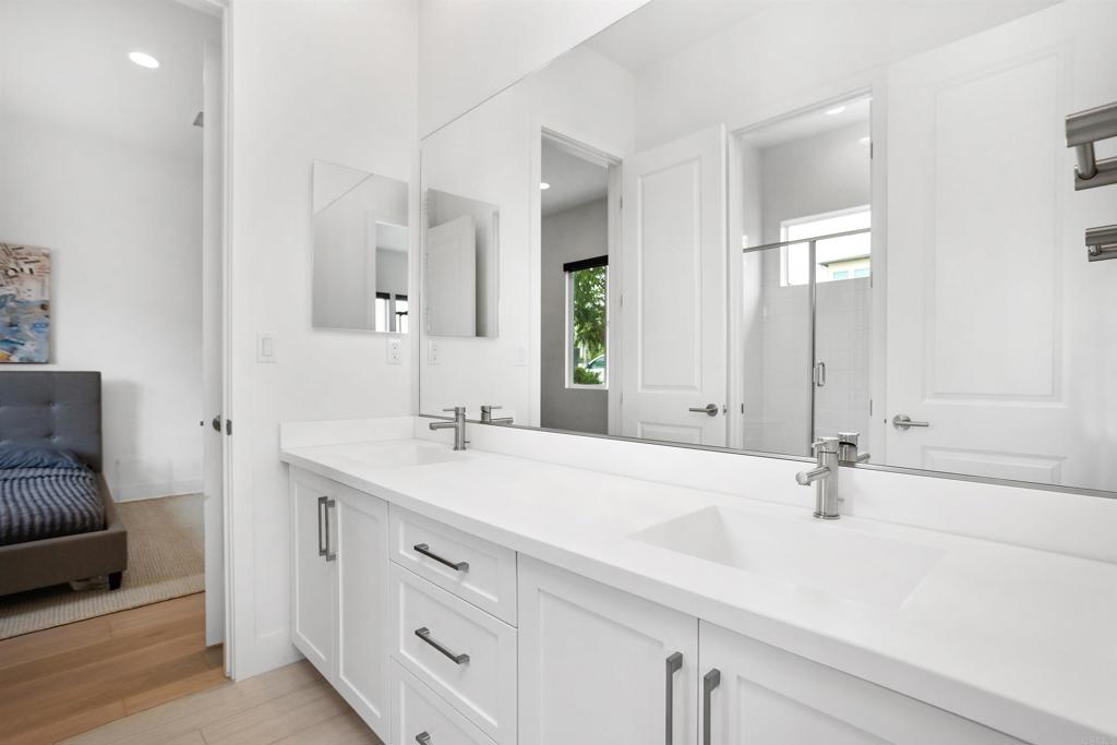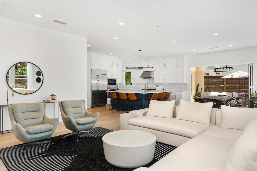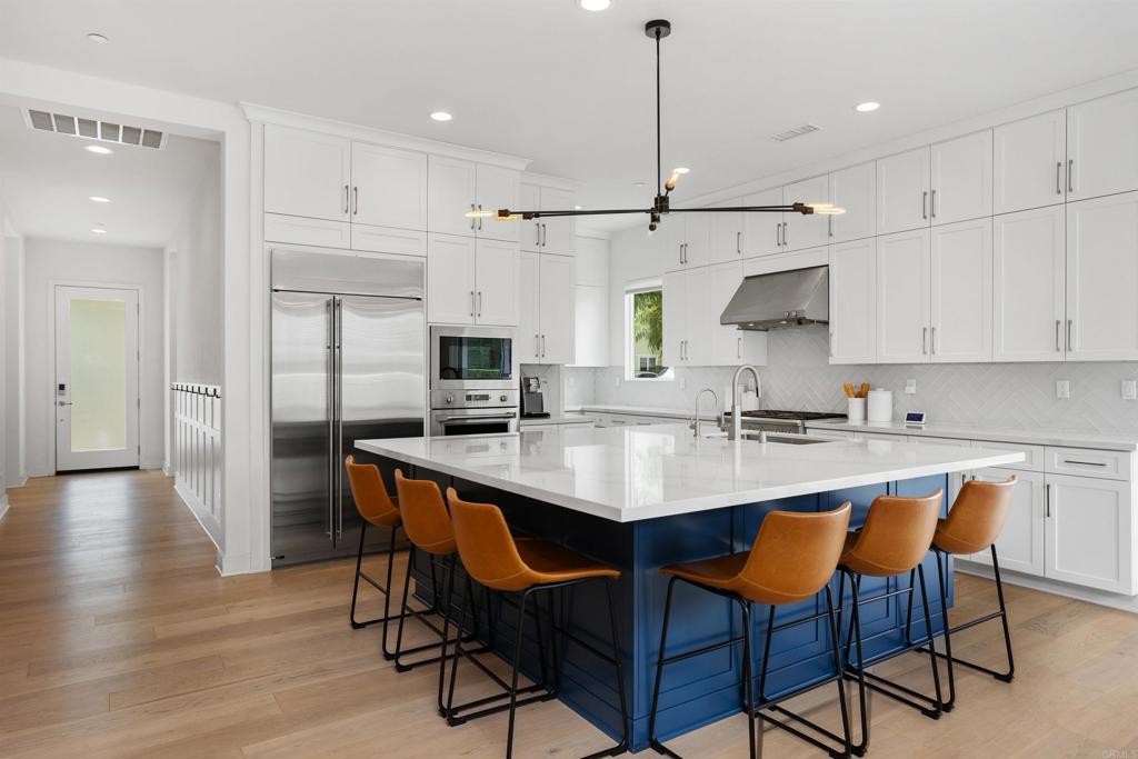 BEAUTIFUL TURNKEY home with 3 BD/2.5 BA and an office. Single level, corner lot , in a cul de sac located in the desirable beach town of Leucadia! Upon entering you will find gorgeous wood floors, ultra high ceilings and large windows that bring in an abundance of natural light. The beautiful open concept kitchen boasts a spacious center island, ample amount of white cabinetry, quartz countertops, decorative backsplash, stainless steel appliances, huge walk in pantry and custom lighting throughout. Bifold doors in the dining space leads out to the maintenance free private back yard perfect for entertaining. More special features that this home has to offer include a tankless water heater, "smart home" for keyless front door and garage entry, appliances, AC and heater... all controlled with one app! Just 1.2 miles to beaches, restaurants, winery, shopping and more! Come and see this beautiful immaculate home for yourself!
